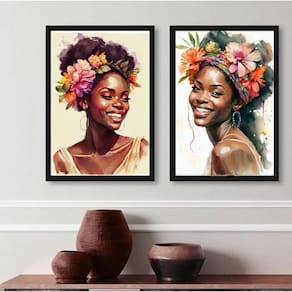 Kit 2 Quadros Decorativos Mulheres Pretas- Aquarela 24X18Cm