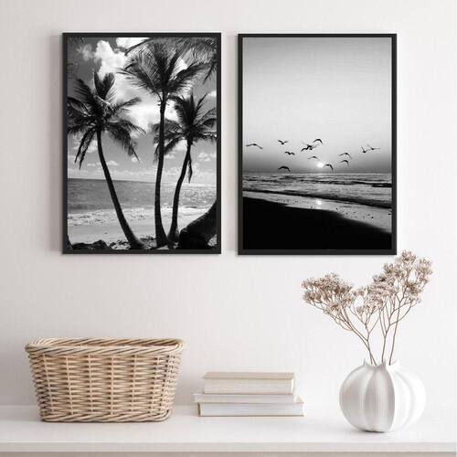 Kit 2 Quadros Decorativos Praia 24x18cm com Vidro - Preto