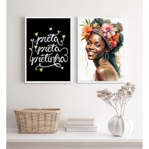 Kit 2 quadros decorativos preta preta pretinha 45x34cm Moldura: madeira preta Informações do produto tire todas as suas dúvidas no descritivo abaixo: decoração para quarto, sala, cozinha, escritório, área gourmet e muito mais. Chega de paredes vazias. Medidas - cada peça tem 45x34cm a3 . Material do papel - papel fotográfico brilhante de altíssima resolução acabamento - todos os quadros são acompanhados de uma película de acetato para proteção da imagem. - os quadros são embalados de forma segura com plástico bolha com camada dupla de acordo com o tamanho dos quadros. Garantia - garantia de 3 meses. Meu quadro chegou. Como posso fixá-lo Você precisa apenas de um martelo e um prego, pois os quadros já vão acompanhados de penduradores. Esta é a forma mais indicada. Caso prefira, você pode utilizar uma fita dupla face neste caso, sugerimos de alta qualidade para evitar que descole e seu quadro caia . Como posso limpar meu quadro A limpeza é feita como um móvel comum da sua casa. Apenas um pano seco ou espanador são suficientes para tal Ean: 7890146663312
