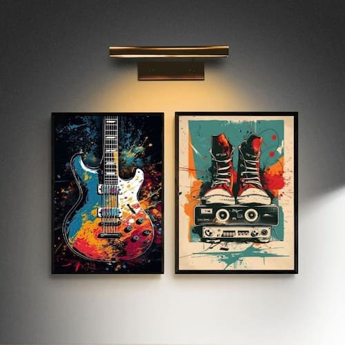 Kit 2 quadros decorativos rock aquarela 45x34cm Cor: moldura branca Informações do produto tire todas as suas dúvidas no descritivo abaixo: decoração para quarto, sala, cozinha, escritório, área gourmet e muito mais. Chega de paredes vazias. Medidas - cada peça tem 45x34cm a3 . Material do papel - papel fotográfico brilhante de altíssima resolução acabamento - todos os quadros são acompanhados de uma película de acetato para proteção da imagem. - os quadros são embalados de forma segura com plástico bolha com camada dupla de acordo com o tamanho dos quadros. Garantia - garantia de 3 meses. Meu quadro chegou. Como posso fixá-lo Você precisa apenas de um martelo e um prego, pois os quadros já vão acompanhados de penduradores. Esta é a forma mais indicada. Caso prefira, você pode utilizar uma fita dupla face neste caso, sugerimos de alta qualidade para evitar que descole e seu quadro caia . Como posso limpar meu quadro A limpeza é feita como um móvel comum da sua casa. Apenas um pano seco ou espanador são suficientes para tal