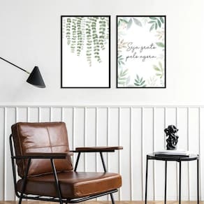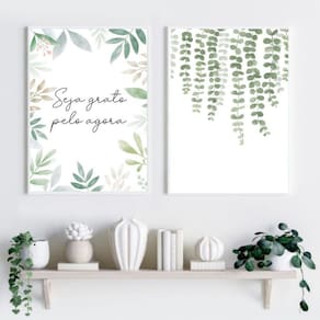Kit 2 quadros decorativos seja grato - folhas 45x34cm - com vidro