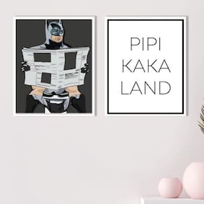 Kit 2 quadros divertidos banheiro herói no vaso 45x34cm Moldura: madeira preta Informações do produto tire todas as suas dúvidas no descritivo abaixo: decoração para quarto, sala, cozinha, escritório, área gourmet e muito mais. Chega de paredes vazias. Medidas - cada peça tem 45x34cm a3 . Material do papel - papel fotográfico brilhante de altíssima resolução acabamento - todos os quadros são acompanhados de uma película de acetato para proteção da imagem. - os quadros são embalados de forma segura com plástico bolha com camada dupla de acordo com o tamanho dos quadros. Garantia - garantia de 3 meses. Meu quadro chegou. Como posso fixá-lo Você precisa apenas de um martelo e um prego, pois os quadros já vão acompanhados de penduradores. Esta é a forma mais indicada. Caso prefira, você pode utilizar uma fita dupla face neste caso, sugerimos de alta qualidade para evitar que descole e seu quadro caia . Como posso limpar meu quadro A limpeza é feita como um móvel comum da sua casa. Apenas um pano seco ou espanador são suficientes para tal Ean: 7892132526526