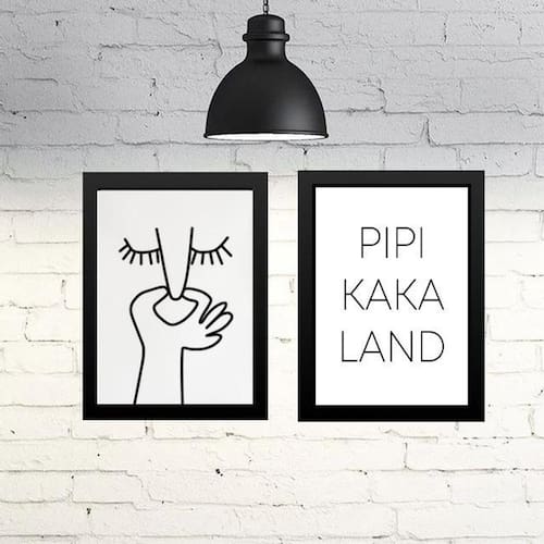 Kit 2 quadros divertidos banheiro minimalista 24x18cm - com vidro Moldura: madeira preta Informações do produto tire todas as suas dúvidas no descritivo abaixo: decoração para quarto, sala, cozinha, escritório, área gourmet e muito mais. Chega de paredes vazias medidas - cada peça tem 24x18cm a5 . Material do papel - papel fotográfico brilhante de altíssima resolução acabamento - todos os quadros são acompanhados de vidro para proteção da imagem. - moldura em madeira maciça na cor preta ou branca conforme produto escolhido e pendurador . - os quadros são embalados de forma segura com plástico bolha com camada dupla de acordo com o tamanho dos quadros. Garantia - garantia de 3 meses. Meu quadro chegou. Como posso fixá-lo Você precisa apenas de um martelo e um prego, pois os quadros já vão acompanhados de penduradores. Esta é a forma mais indicada. Como posso limpar meu quadro A limpeza é feita como um móvel comum da sua casa. Apenas um pano seco ou espanador são suficientes para tal