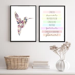 Kit 2 quadros é preciso amor beija-flor 45x34cm Moldura: madeira preta Informações do produto tire todas as suas dúvidas no descritivo abaixo: decoração para quarto, sala, cozinha, escritório, área gourmet e muito mais. Chega de paredes vazias. Medidas - cada peça tem 45x34cm a3 . Material do papel - papel fotográfico brilhante de altíssima resolução acabamento - todos os quadros são acompanhados de uma película de acetato para proteção da imagem. - os quadros são embalados de forma segura com plástico bolha com camada dupla de acordo com o tamanho dos quadros. - de 3 meses. Meu quadro chegou. Como posso fixá-lo Você precisa apenas de um martelo e um prego, pois os quadros já vão acompanhados de penduradores. Esta é a forma mais indicada. Caso prefira, você pode utilizar uma fita dupla face neste caso, sugerimos de alta qualidade para evitar que descole e seu quadro caia . Como posso limpar meu quadro A limpeza é feita como um móvel comum da sua casa. Apenas um pano seco ou espanador são suficientes para tal Marca: Não Informado