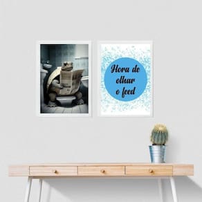 Kit 2 quadros engraçados banheiro - tartaruga 33x24cm - com vidro Moldura: madeira preta Informações do produto tire todas as suas dúvidas no descritivo abaixo: decoração para quarto, sala, cozinha, escritório, área gourmet e muito mais. Chega de paredes vazias medidas - cada peça tem 33x24cm a4 . Material do papel - papel fotográfico brilhante de altíssima resolução acabamento - todos os quadros são acompanhados de vidro para proteção da imagem. - moldura em madeira maciça na cor preta ou branca conforme produto escolhido e pendurador . - os quadros são embalados de forma segura com plástico bolha com camada dupla de acordo com o tamanho dos quadros. Garantia - garantia de 3 meses. Meu quadro chegou. Como posso fixá-lo Você precisa apenas de um martelo e um prego, pois os quadros já vão acompanhados de penduradores. Esta é a forma mais indicada. Como posso limpar meu quadro A limpeza é feita como um móvel comum da sua casa. Apenas um pano seco ou espanador são suficientes para tal