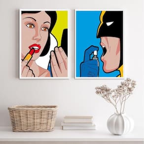 Kit 2 quadros engraçados para banheiro unissex 24x18cm - com vidro Moldura: madeira preta Informações do produto tire todas as suas dúvidas no descritivo abaixo: decoração para quarto, sala, cozinha, escritório, área gourmet e muito mais. Chega de paredes vazias medidas - cada peça tem 24x18cm a5 . Material do papel - papel fotográfico brilhante de altíssima resolução acabamento - todos os quadros são acompanhados de vidro para proteção da imagem. - moldura em madeira maciça na cor preta ou branca conforme produto escolhido e pendurador . - os quadros são embalados de forma segura com plástico bolha com camada dupla de acordo com o tamanho dos quadros. Garantia - garantia de 3 meses. Meu quadro chegou. Como posso fixá-lo Você precisa apenas de um martelo e um prego, pois os quadros já vão acompanhados de penduradores. Esta é a forma mais indicada. Como posso limpar meu quadro A limpeza é feita como um móvel comum da sua casa. Apenas um pano seco ou espanador são suficientes para tal