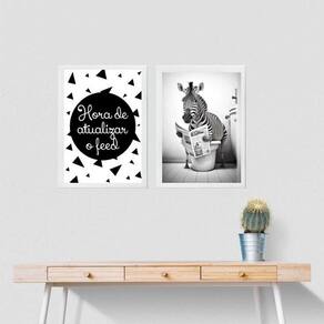 Kit 2 quadros engraçados banheiro - zebra 24x18cm - com vidro Moldura: madeira branca Informações do produto tire todas as suas dúvidas no descritivo abaixo: decoração para quarto, sala, cozinha, escritório, área gourmet e muito mais. Chega de paredes vazias medidas - cada peça tem 24x18cm a5 . Material do papel - papel fotográfico brilhante de altíssima resolução acabamento - todos os quadros são acompanhados de vidro para proteção da imagem. - moldura em madeira maciça na cor preta ou branca conforme produto escolhido e pendurador . - os quadros são embalados de forma segura com plástico bolha com camada dupla de acordo com o tamanho dos quadros. Garantia - garantia de 3 meses. Meu quadro chegou. Como posso fixá-lo Você precisa apenas de um martelo e um prego, pois os quadros já vão acompanhados de penduradores. Esta é a forma mais indicada. Como posso limpar meu quadro A limpeza é feita como um móvel comum da sua casa. Apenas um pano seco ou espanador são suficientes para tal