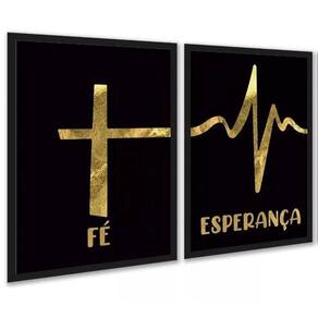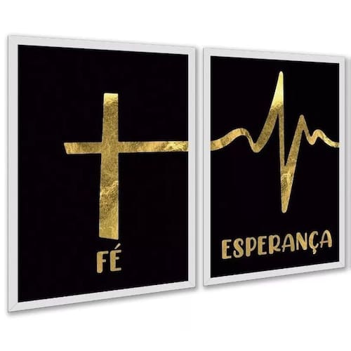 Kit 2 quadros fé esperança - preto com dourado 33x24cm Cor: moldura branca Informações do produto tire todas as suas dúvidas no descritivo abaixo: decoração para quarto, sala, cozinha, escritório, área gourmet e muito mais. Chega de paredes vazias medidas - cada peça tem 33x24cm a4 . Material do papel - papel fotográfico brilhante de altíssima resolução acabamento - todos os quadros são acompanhados de uma película de acetato para proteção da imagem. - os quadros são embalados de forma segura com plástico bolha com camada dupla de acordo com o tamanho dos quadros. - de 3 meses. Meu quadro chegou. Como posso fixá-lo Você precisa apenas de um martelo e um prego, pois os quadros já vão acompanhados de penduradores. Esta é a forma mais indicada. Caso prefira, você pode utilizar uma fita dupla face neste caso, sugerimos de alta qualidade para evitar que descole e seu quadro caia . Como posso limpar meu quadro A limpeza é feita como um móvel comum da sua casa. Apenas um pano seco ou espanador são suficientes para tal