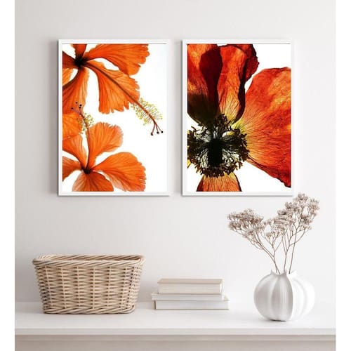Kit 2 quadros flores modernas alaranjadas 24x18cm Moldura: madeira branca Informações do produto tire todas as suas dúvidas no descritivo abaixo: decoração para quarto, sala, cozinha, escritório, área gourmet e muito mais. Chega de paredes vazias medidas - cada peça tem 24x18cm a5 . Material do papel - papel fotográfico brilhante de altíssima resolução acabamento - todos os quadros são acompanhados de uma película de acetato para proteção da imagem. - os quadros são embalados de forma segura com plástico bolha com camada dupla de acordo com o tamanho dos quadros. Garantia - garantia de 3 meses. Meu quadro chegou. Como posso fixá-lo Você precisa apenas de um martelo e um prego, pois os quadros já vão acompanhados de penduradores. Esta é a forma mais indicada. Caso prefira, você pode utilizar uma fita dupla face neste caso, sugerimos de alta qualidade para evitar que descole e seu quadro caia . Como posso limpar meu quadro A limpeza é feita como um móvel comum da sua casa. Apenas um pano seco ou espanador são suficientes para tal Ean: 7899810853554