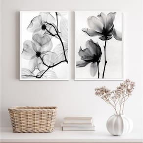 Kit 2 Quadros Sala Fotografias Flores Transparentes 24X18Cm