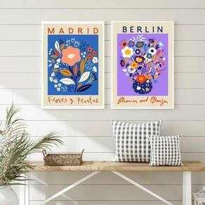 Kit 2 quadros flower market - madrid e berlin 24x18cm - com vidro Moldura: madeira preta Informações do produto tire todas as suas dúvidas no descritivo abaixo: decoração para quarto, sala, cozinha, escritório, área gourmet e muito mais. Chega de paredes vazias medidas - cada peça tem 24x18cm a5 . Material do papel - papel fotográfico brilhante de altíssima resolução acabamento - todos os quadros são acompanhados de vidro para proteção da imagem. - moldura em madeira maciça na cor preta ou branca conforme produto escolhido e pendurador . - os quadros são embalados de forma segura com plástico bolha com camada dupla de acordo com o tamanho dos quadros. Garantia - garantia de 3 meses. Meu quadro chegou. Como posso fixá-lo Você precisa apenas de um martelo e um prego, pois os quadros já vão acompanhados de penduradores. Esta é a forma mais indicada. Como posso limpar meu quadro A limpeza é feita como um móvel comum da sua casa. Apenas um pano seco ou espanador são suficientes para tal