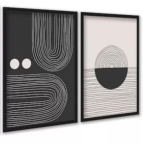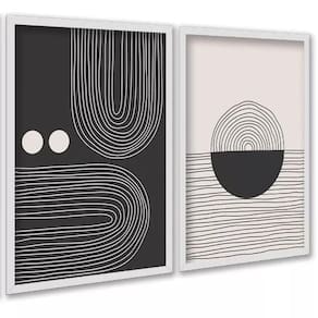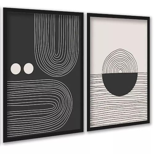 Kit 2 quadros formas abstratos linhas preto e bege 33x24cm - com vidro Cor: moldura branca Informações do produto tire todas as suas dúvidas no descritivo abaixo: decoração para quarto, sala, cozinha, escritório, área gourmet e muito mais. Chega de paredes vazias medidas - cada peça tem 33x24cm a4 . Material do papel - papel fotográfico brilhante de altíssima resolução acabamento - todos os quadros são acompanhados de vidro para proteção da imagem. - moldura em madeira maciça na cor preta ou branca conforme produto escolhido e pendurador . - os quadros são embalados de forma segura com plástico bolha com camada dupla de acordo com o tamanho dos quadros. - de 3 meses. Meu quadro chegou. Como posso fixá-lo Você precisa apenas de um martelo e um prego, pois os quadros já vão acompanhados de penduradores. Esta é a forma mais indicada. Como posso limpar meu quadro A limpeza é feita como um móvel comum da sua casa. Apenas um pano seco ou espanador são suficientes para tal