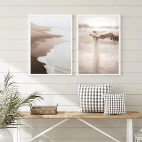 Kit 2 quadros fotografias areia praia mar- bege e marrom 24x18cm - com vidro Moldura: madeira branca Informações do produto tire todas as suas dúvidas no descritivo abaixo: decoração para quarto, sala, cozinha, escritório, área gourmet e muito mais. Chega de paredes vazias medidas - cada peça tem 24x18cm a5 . Material do papel - papel fotográfico brilhante de altíssima resolução acabamento - todos os quadros são acompanhados de vidro para proteção da imagem. - moldura em madeira maciça na cor preta ou branca conforme produto escolhido e pendurador . - os quadros são embalados de forma segura com plástico bolha com camada dupla de acordo com o tamanho dos quadros. Garantia - garantia de 3 meses. Meu quadro chegou. Como posso fixá-lo Você precisa apenas de um martelo e um prego, pois os quadros já vão acompanhados de penduradores. Esta é a forma mais indicada. Como posso limpar meu quadro A limpeza é feita como um móvel comum da sua casa. Apenas um pano seco ou espanador são suficientes para tal Ean: 7897201618232
