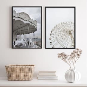 Kit 2 quadros fotografias brancas carrossel e roda gigante 24x18cm Moldura: madeira preta Informações do produto tire todas as suas dúvidas no descritivo abaixo: decoração para quarto, sala, cozinha, escritório, área gourmet e muito mais. Chega de paredes vazias medidas - cada peça tem 24x18cm a5 . Material do papel - papel fotográfico brilhante de altíssima resolução acabamento - todos os quadros são acompanhados de uma película de acetato para proteção da imagem. - os quadros são embalados de forma segura com plástico bolha com camada dupla de acordo com o tamanho dos quadros. Garantia - garantia de 3 meses. Meu quadro chegou. Como posso fixá-lo Você precisa apenas de um martelo e um prego, pois os quadros já vão acompanhados de penduradores. Esta é a forma mais indicada. Caso prefira, você pode utilizar uma fita dupla face neste caso, sugerimos de alta qualidade para evitar que descole e seu quadro caia . Como posso limpar meu quadro A limpeza é feita como um móvel comum da sua casa. Apenas um pano seco ou espanador são suficientes para tal Ean: 7891057193493