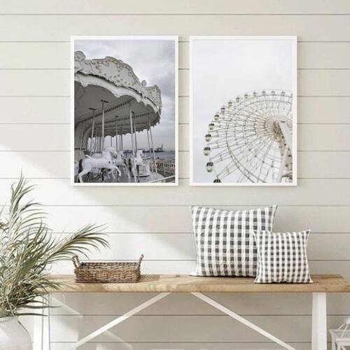 Kit 2 quadros fotografias brancas carrossel e roda gigante 24x18cm Moldura: madeira branca Informações do produto tire todas as suas dúvidas no descritivo abaixo: decoração para quarto, sala, cozinha, escritório, área gourmet e muito mais. Chega de paredes vazias medidas - cada peça tem 24x18cm a5 . Material do papel - papel fotográfico brilhante de altíssima resolução acabamento - todos os quadros são acompanhados de uma película de acetato para proteção da imagem. - os quadros são embalados de forma segura com plástico bolha com camada dupla de acordo com o tamanho dos quadros. - de 3 meses. Meu quadro chegou. Como posso fixá-lo Você precisa apenas de um martelo e um prego, pois os quadros já vão acompanhados de penduradores. Esta é a forma mais indicada. Caso prefira, você pode utilizar uma fita dupla face neste caso, sugerimos de alta qualidade para evitar que descole e seu quadro caia . Como posso limpar meu quadro A limpeza é feita como um móvel comum da sua casa. Apenas um pano seco ou espanador são suficientes para tal Marca: Não Informado