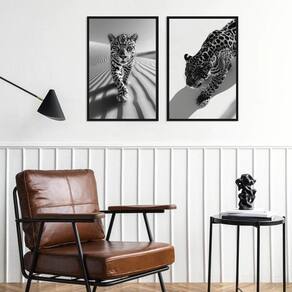 Kit 2 quadros fotos leopardos preto e branco 24x18cm - com vidro Cor: moldura branca Informações do produto tire todas as suas dúvidas no descritivo abaixo: decoração para quarto, sala, cozinha, escritório, área gourmet e muito mais. Chega de paredes vazias medidas - cada peça tem 24x18cm a5 . Material do papel - papel fotográfico brilhante de altíssima resolução acabamento - todos os quadros são acompanhados de vidro para proteção da imagem. - moldura em madeira maciça na cor preta ou branca conforme produto escolhido e pendurador . - os quadros são embalados de forma segura com plástico bolha com camada dupla de acordo com o tamanho dos quadros. Garantia - garantia de 3 meses. Meu quadro chegou. Como posso fixá-lo Você precisa apenas de um martelo e um prego, pois os quadros já vão acompanhados de penduradores. Esta é a forma mais indicada. Como posso limpar meu quadro A limpeza é feita como um móvel comum da sua casa. Apenas um pano seco ou espanador são suficientes para tal Ean: 7891234560742