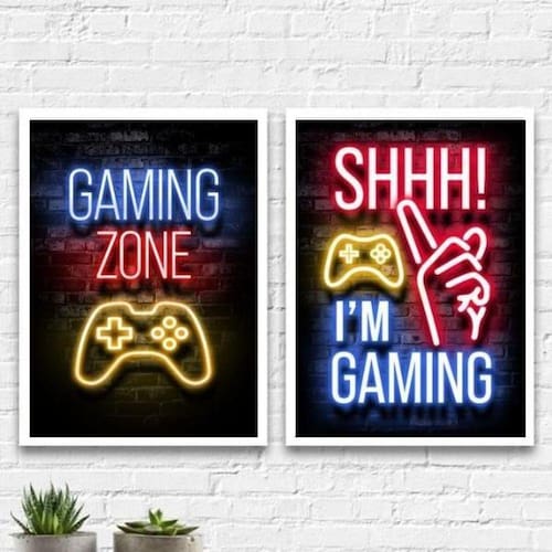 Kit 2 quadros gaming zone 33x24cm - com vidro Moldura: madeira branca