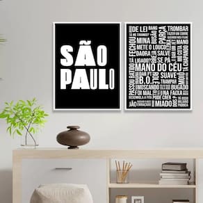 Kit 2 quadros gírias de 45x34cm Cor: moldura branca Informações do produto tire todas as suas dúvidas no descritivo abaixo: decoração para quarto, sala, cozinha, escritório, área gourmet e muito mais. Chega de paredes vazias. Medidas - cada peça tem 45x34cm a3 . Material do papel - papel fotográfico brilhante de altíssima resolução acabamento - todos os quadros são acompanhados de uma película de acetato para proteção da imagem. - os quadros são embalados de forma segura com plástico bolha com camada dupla de acordo com o tamanho dos quadros. - de 3 meses. Meu quadro chegou. Como posso fixá-lo Você precisa apenas de um martelo e um prego, pois os quadros já vão acompanhados de penduradores. Esta é a forma mais indicada. Caso prefira, você pode utilizar uma fita dupla face neste caso, sugerimos de alta qualidade para evitar que descole e seu quadro caia . Como posso limpar meu quadro A limpeza é feita como um móvel comum da sua casa. Apenas um pano seco ou espanador são suficientes para tal Marca: Não Informado