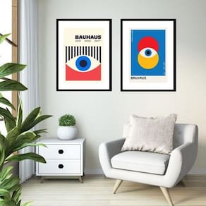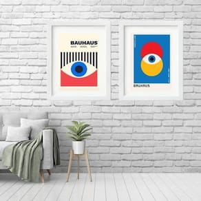 Kit 2 quadros grandes bauhaus olhos - 60x48cm Moldura: madeira branca Informações do produto tire todas as suas dúvidas no descritivo abaixo: decoração para quarto, sala, cozinha, escritório, área gourmet e muito mais. Chega de paredes vazias medidas - cada peça tem 60x48cm . Material do papel - papel fotográfico brilhante de altíssima resolução acabamento - todos os quadros são acompanhados de vidro para proteção da imagem. - moldura em madeira maciça na cor preta ou branca conforme produto escolhido e pendurador. - paspatur branco com 7cm de largura - os quadros são embalados de forma segura com plástico bolha com camada dupla de acordo com o tamanho dos quadros. Garantia - garantia de 3 meses. Meu quadro chegou. Como posso fixá-lo Você precisa apenas de um martelo e um prego, pois os quadros já vão acompanhados de penduradores. Esta é a forma mais indicada. Como posso limpar meu quadro A limpeza é feita como um móvel comum da sua casa. Apenas um pano seco ou espanador são suficientes para tal