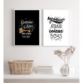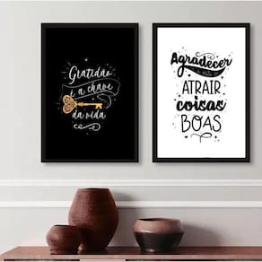 Kit 2 quadros gratidão e agradecer- a chave do sucesso 33x24cm - com vidro