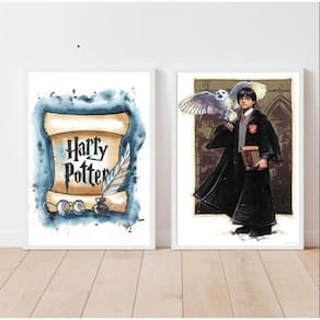 O Kit 2 Quadros Harry Potter Aquarela 24X18Cm é perfeito para decorar qualquer ambiente, como quarto, sala, cozinha, escritório, área gourmet e muito mais. Com moldura de madeira preta, esses quadros vão trazer um toque mágico para a sua decoração.