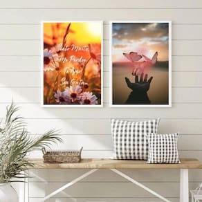 Kit 2 Quadros Ho Oponopono Mágico- Flores Borboletas 33X24Cm