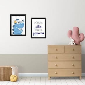 Kit 2 quadros infantis dinossauro sonhe alto 24x18cm Moldura: madeira preta Informações do produto tire todas as suas dúvidas no descritivo abaixo: decoração para quarto, sala, cozinha, escritório, área gourmet e muito mais. Chega de paredes vazias medidas - cada peça tem 24x18cm a5 . Material do papel - papel fotográfico brilhante de altíssima resolução acabamento - todos os quadros são acompanhados de uma película de acetato para proteção da imagem. - os quadros são embalados de forma segura com plástico bolha com camada dupla de acordo com o tamanho dos quadros. Garantia - garantia de 3 meses. Meu quadro chegou. Como posso fixá-lo Você precisa apenas de um martelo e um prego, pois os quadros já vão acompanhados de penduradores. Esta é a forma mais indicada. Caso prefira, você pode utilizar uma fita dupla face neste caso, sugerimos de alta qualidade para evitar que descole e seu quadro caia . Como posso limpar meu quadro A limpeza é feita como um móvel comum da sua casa. Apenas um pano seco ou espanador são suficientes para tal