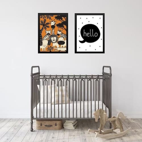Kit 2 quadros infantis laranja e preto - safari 45x34cm - com vidro Cor: moldura branca Informações do produto tire todas as suas dúvidas no descritivo abaixo: decoração para quarto, sala, cozinha, escritório, área gourmet e muito mais. Chega de paredes vazias medidas - cada peça tem 45x34cm a3 . Material do papel - papel fotográfico brilhante de altíssima resolução acabamento - todos os quadros são acompanhados de vidro para proteção da imagem. - moldura em madeira maciça na cor preta ou branca conforme produto escolhido e pendurador . - os quadros são embalados de forma segura com plástico bolha com camada dupla de acordo com o tamanho dos quadros. Garantia - garantia de 3 meses. Meu quadro chegou. Como posso fixá-lo Você precisa apenas de um martelo e um prego, pois os quadros já vão acompanhados de penduradores. Esta é a forma mais indicada. Como posso limpar meu quadro A limpeza é feita como um móvel comum da sua casa. Apenas um pano seco ou espanador são suficientes para tal