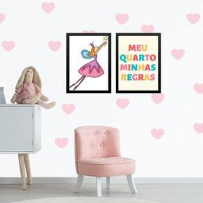 Kit 2 quadros infantis meu quarto minhas regras 33x24cm - com vidro Moldura: madeira preta Informações do produto tire todas as suas dúvidas no descritivo abaixo: decoração para quarto, sala, cozinha, escritório, área gourmet e muito mais. Chega de paredes vazias medidas - cada peça tem 33x24cm a4 . Material do papel - papel fotográfico brilhante de altíssima resolução acabamento - todos os quadros são acompanhados de vidro para proteção da imagem. - moldura em madeira maciça na cor preta ou branca conforme produto escolhido e pendurador . - os quadros são embalados de forma segura com plástico bolha com camada dupla de acordo com o tamanho dos quadros. Garantia - garantia de 3 meses. Meu quadro chegou. Como posso fixá-lo Você precisa apenas de um martelo e um prego, pois os quadros já vão acompanhados de penduradores. Esta é a forma mais indicada. Como posso limpar meu quadro A limpeza é feita como um móvel comum da sua casa. Apenas um pano seco ou espanador são suficientes para tal