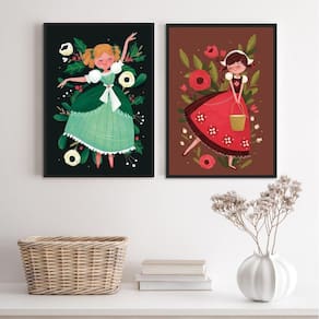 O Kit 2 Quadros Infantis Retrô Menina Camponesa é perfeito para decorar o quarto das crianças com muito charme e delicadeza. Cada peça tem o tamanho de 33x24cm A4 e é ideal para compor a decoração de quartos, salas, cozinhas, escritórios, áreas gourmet e muito mais.