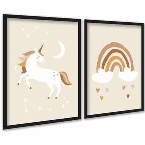 Kit 2 quadros infantis unicórnio arco-íris bege 33x24cm Cor: moldura branca Informações do produto tire todas as suas dúvidas no descritivo abaixo: decoração para quarto, sala, cozinha, escritório, área gourmet e muito mais. Chega de paredes vazias medidas - cada peça tem 33x24cm a4 . Material do papel - papel fotográfico brilhante de altíssima resolução acabamento - todos os quadros são acompanhados de uma película de acetato para proteção da imagem. - os quadros são embalados de forma segura com plástico bolha com camada dupla de acordo com o tamanho dos quadros. - de 3 meses. Meu quadro chegou. Como posso fixá-lo Você precisa apenas de um martelo e um prego, pois os quadros já vão acompanhados de penduradores. Esta é a forma mais indicada. Caso prefira, você pode utilizar uma fita dupla face neste caso, sugerimos de alta qualidade para evitar que descole e seu quadro caia . Como posso limpar meu quadro A limpeza é feita como um móvel comum da sua casa. Apenas um pano seco ou espanador são suficientes para tal