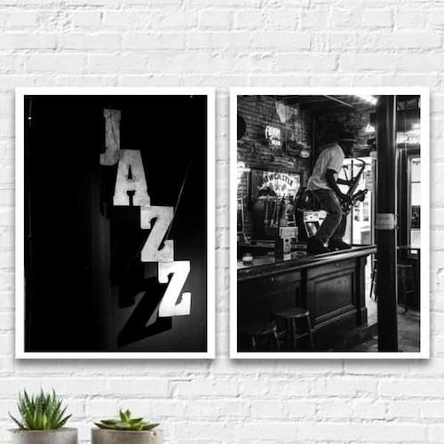 Kit 2 quadros jazz restaurante 45x34cm Moldura: madeira branca
