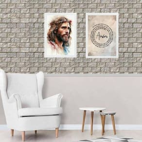 Kit 2 quadros jesus aquarela - pai nosso 45x34cm - com vidro Moldura: madeira branca Informações do produto tire todas as suas dúvidas no descritivo abaixo: decoração para quarto, sala, cozinha, escritório, área gourmet e muito mais. Chega de paredes vazias medidas - cada peça tem 45x34cm a3 . Material do papel - papel fotográfico brilhante de altíssima resolução acabamento - todos os quadros são acompanhados de vidro para proteção da imagem. - moldura em madeira maciça na cor preta ou branca conforme produto escolhido e pendurador . - os quadros são embalados de forma segura com plástico bolha com camada dupla de acordo com o tamanho dos quadros. Garantia - garantia de 3 meses. Meu quadro chegou. Como posso fixá-lo Você precisa apenas de um martelo e um prego, pois os quadros já vão acompanhados de penduradores. Esta é a forma mais indicada. Como posso limpar meu quadro A limpeza é feita como um móvel comum da sua casa. Apenas um pano seco ou espanador são suficientes para tal