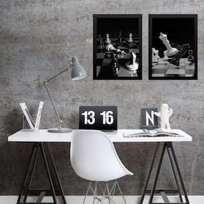 Kit 2 quadros jogo xadrez- preto e branco 33x24cm