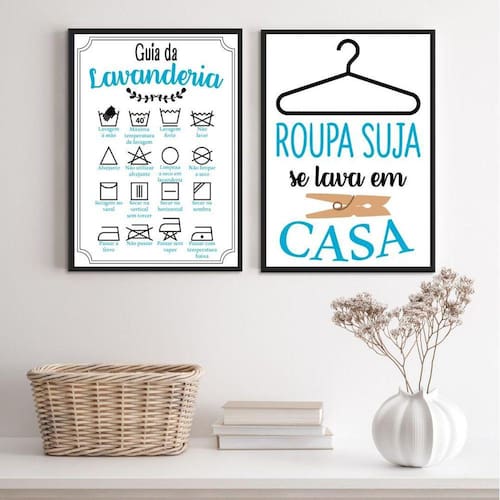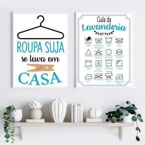 Kit 2 quadros lavanderia soft - azul 45x34cm - com vidro Moldura: madeira branca Informações do produto tire todas as suas dúvidas no descritivo abaixo: decoração para quarto, sala, cozinha, escritório, área gourmet e muito mais. Chega de paredes vazias medidas - cada peça tem 45x34cm a3 . Material do papel - papel fotográfico brilhante de altíssima resolução acabamento - todos os quadros são acompanhados de vidro para proteção da imagem. - moldura em madeira maciça na cor preta ou branca conforme produto escolhido e pendurador . - os quadros são embalados de forma segura com plástico bolha com camada dupla de acordo com o tamanho dos quadros. Garantia - garantia de 3 meses. Meu quadro chegou. Como posso fixá-lo Você precisa apenas de um martelo e um prego, pois os quadros já vão acompanhados de penduradores. Esta é a forma mais indicada. Como posso limpar meu quadro A limpeza é feita como um móvel comum da sua casa. Apenas um pano seco ou espanador são suficientes para tal
