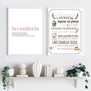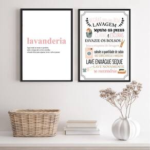 Kit 2 quadros lavanderia soft - rosa 45x34cm - com vidro