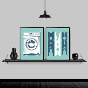 Kit 2 quadros lavanderia turquesa 24x18cm - com vidro Moldura: madeira branca Informações do produto tire todas as suas dúvidas no descritivo abaixo: decoração para quarto, sala, cozinha, escritório, área gourmet e muito mais. Chega de paredes vazias medidas - cada peça tem 24x18cm a5 . Material do papel - papel fotográfico brilhante de altíssima resolução acabamento - todos os quadros são acompanhados de vidro para proteção da imagem. - moldura em madeira maciça na cor preta e pendurador . - os quadros são embalados de forma segura com plástico bolha com camada dupla de acordo com o tamanho dos quadros. Garantia - garantia de 3 meses. Meu quadro chegou. Como posso fixá-lo Você precisa apenas de um martelo e um prego, pois os quadros já vão acompanhados de penduradores. Esta é a forma mais indicada. Como posso limpar meu quadro A limpeza é feita como um móvel comum da sua casa. Apenas um pano seco ou espanador são suficientes para tal Ean: 7895142240697