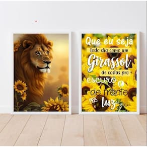 Kit 2 Quadros Leão Que Eu Seja Como O Girassol 33X24Cm