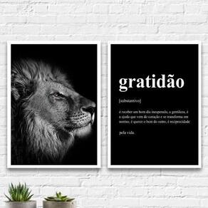Kit 2 Quadros Leão Gratidão Significado 45X34Cm
