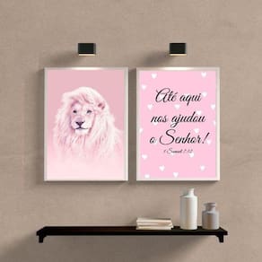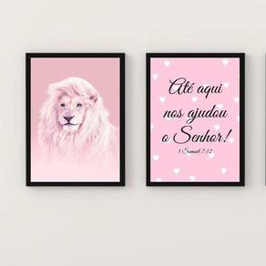 O Kit 2 Quadros Leão Rosa Até Aqui Nos Ajudou O Senhor 33X24Cm é perfeito para quem busca uma decoração charmosa e inspiradora para diversos ambientes, como quarto, sala, cozinha, escritório, área gourmet e muito mais. Com medidas de 33x24cm A4 , cada peça é produzida em papel fotográfico brilhante de altíssima resolução, garantindo uma imagem nítida e vibrante.