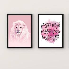 Compre agora o Kit 2 Quadros Leão Rosa Positive Vibes e transforme a decoração do seu ambiente de forma única e especial. Ean: 7898117674800