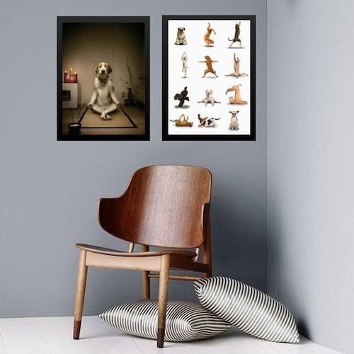 Kit 2 quadros meditação yoga - dogs 45x34cm Moldura: madeira preta Informações do produto tire todas as suas dúvidas no descritivo abaixo: decoração para quarto, sala, cozinha, escritório, área gourmet e muito mais. Chega de paredes vazias. Medidas - cada peça tem 45x34cm a3 . Material do papel - papel fotográfico brilhante de altíssima resolução acabamento - todos os quadros são acompanhados de uma película de acetato para proteção da imagem. - os quadros são embalados de forma segura com plástico bolha com camada dupla de acordo com o tamanho dos quadros. Garantia - garantia de 3 meses. Meu quadro chegou. Como posso fixá-lo Você precisa apenas de um martelo e um prego, pois os quadros já vão acompanhados de penduradores. Esta é a forma mais indicada. Caso prefira, você pode utilizar uma fita dupla face neste caso, sugerimos de alta qualidade para evitar que descole e seu quadro caia . Como posso limpar meu quadro A limpeza é feita como um móvel comum da sua casa. Apenas um pano seco ou espanador são suficientes para tal