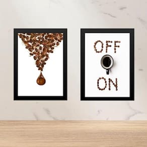 Kit 2 Quadros Minimalistas Café On - Off 33X24Cm - Com Vidro