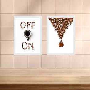 Kit 2 quadros minimalistas café on - off 33x24cm - com vidro