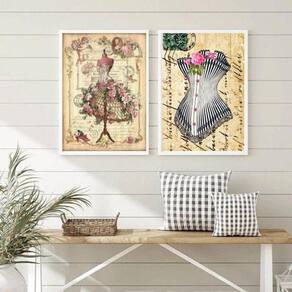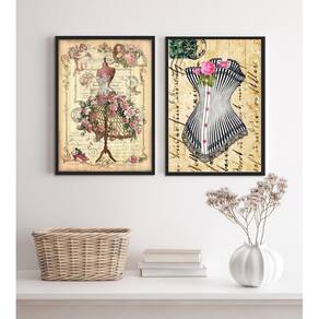 Kit 2 quadros moda vintage- vestido e espartilho 45x34cm - com vidro Moldura: madeira branca Informações do produto tire todas as suas dúvidas no descritivo abaixo: decoração para quarto, sala, cozinha, escritório, área gourmet e muito mais. Chega de paredes vazias medidas - cada peça tem 45x34cm a3 . Material do papel - papel fotográfico brilhante de altíssima resolução acabamento - todos os quadros são acompanhados de vidro para proteção da imagem. - moldura em madeira maciça na cor preta ou branca conforme produto escolhido e pendurador . - os quadros são embalados de forma segura com plástico bolha com camada dupla de acordo com o tamanho dos quadros. Garantia - garantia de 3 meses. Meu quadro chegou. Como posso fixá-lo Você precisa apenas de um martelo e um prego, pois os quadros já vão acompanhados de penduradores. Esta é a forma mais indicada. Como posso limpar meu quadro A limpeza é feita como um móvel comum da sua casa. Apenas um pano seco ou espanador são suficientes para tal Ean: 7893470523772