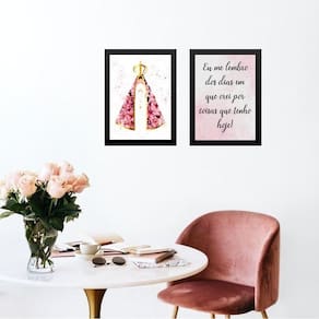 Kit 2 quadros nossa senhora dias que orei 24x18cm - com vidro Moldura: madeira branca Informações do produto tire todas as suas dúvidas no descritivo abaixo: decoração para quarto, sala, cozinha, escritório, área gourmet e muito mais. Chega de paredes vazias medidas - cada peça tem 24x18cm a5 . Material do papel - papel fotográfico brilhante de altíssima resolução acabamento - todos os quadros são acompanhados de vidro para proteção da imagem. - moldura em madeira maciça na cor preta ou branca conforme produto escolhido e pendurador . - os quadros são embalados de forma segura com plástico bolha com camada dupla de acordo com o tamanho dos quadros. Garantia - garantia de 3 meses. Meu quadro chegou. Como posso fixá-lo Você precisa apenas de um martelo e um prego, pois os quadros já vão acompanhados de penduradores. Esta é a forma mais indicada. Como posso limpar meu quadro A limpeza é feita como um móvel comum da sua casa. Apenas um pano seco ou espanador são suficientes para tal