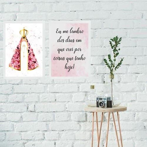 Kit 2 quadros nossa senhora dias que orei 24x18cm Moldura: madeira preta Informações do produto tire todas as suas dúvidas no descritivo abaixo: decoração para quarto, sala, cozinha, escritório, área gourmet e muito mais. Chega de paredes vazias medidas - cada peça tem 24x18cm a5 . Material do papel - papel fotográfico brilhante de altíssima resolução acabamento - todos os quadros são acompanhados de uma película de acetato para proteção da imagem. - moldura em madeira maciça na cor preta ou branca conforme produto escolhido e pendurador móvel que pode ser retirado facilmente caso deseje fixar com fita dupla face. - os quadros são embalados de forma segura com plástico bolha com camada dupla de acordo com o tamanho dos quadros. Garantia - garantia de 3 meses. Meu quadro chegou. Como posso fixá-lo Você precisa apenas de um martelo e um prego, pois os quadros já vão acompanhados de penduradores. Esta é a forma mais indicada. Caso prefira, você pode utilizar uma fita dupla face neste caso, sugerimos de alta qualidade para evitar que descole e seu quadro caia . Como posso limpar meu quadro A limpeza é feita como um móvel comum da sua casa. Apenas um pano seco ou espanador são suficientes para tal