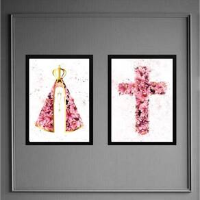 Kit 2 quadros nossa senhora e cruz flores 24x18cm - com vidro Moldura: madeira branca Informações do produto tire todas as suas dúvidas no descritivo abaixo: decoração para quarto, sala, cozinha, escritório, área gourmet e muito mais. Chega de paredes vazias medidas - cada peça tem 24x18cm a5 . Material do papel - papel fotográfico brilhante de altíssima resolução acabamento - todos os quadros são acompanhados de vidro para proteção da imagem. - moldura em madeira maciça na cor preta ou branca conforme produto escolhido e pendurador . - os quadros são embalados de forma segura com plástico bolha com camada dupla de acordo com o tamanho dos quadros. Garantia - garantia de 3 meses. Meu quadro chegou. Como posso fixá-lo Você precisa apenas de um martelo e um prego, pois os quadros já vão acompanhados de penduradores. Esta é a forma mais indicada. Como posso limpar meu quadro A limpeza é feita como um móvel comum da sua casa. Apenas um pano seco ou espanador são suficientes para tal