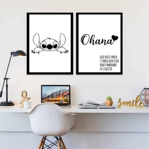Kit 2 quadros ohana família 45x34cm - com vidro Moldura: madeira preta Informações do produto Decoração para quarto, sala, cozinha, escritório, área gourmet e muito mais. Chega de paredes vazias: medidas - cada peça tem 45x34cm a3 . Material do papel - papel fotográfico brilhante de altíssima resolução acabamento - todos os quadros são acompanhados de vidro para proteção da imagem. - moldura em madeira maciça na cor preta e pendurador. - os quadros são embalados de forma segura com plástico bolha com camada dupla de acordo com o tamanho dos quadros. - de 3 meses. Meu quadro chegou. Como posso fixá-lo Você precisa apenas de um martelo e um prego, pois os quadros já vão acompanhados de penduradores. Esta é a forma mais indicada. Como posso limpar meu quadro A limpeza é feita como um móvel comum da sua casa. Apenas um pano seco ou espanador são suficientes para tal Ean: 7895142187084