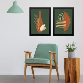 Kit 2 quadros orgânicos terracota e verde musgo 33x24cm Moldura: madeira preta Informações do produto tire todas as suas dúvidas no descritivo abaixo: decoração para quarto, sala, cozinha, escritório, área gourmet e muito mais. Chega de paredes vazias medidas - cada peça tem 33x24cm a4 . Material do papel - papel fotográfico brilhante de altíssima resolução acabamento - todos os quadros são acompanhados de uma película de acetato para proteção da imagem. - os quadros são embalados de forma segura com plástico bolha com camada dupla de acordo com o tamanho dos quadros. Garantia - garantia de 3 meses. Meu quadro chegou. Como posso fixá-lo Você precisa apenas de um martelo e um prego, pois os quadros já vão acompanhados de penduradores. Esta é a forma mais indicada. Caso prefira, você pode utilizar uma fita dupla face neste caso, sugerimos de alta qualidade para evitar que descole e seu quadro caia . Como posso limpar meu quadro A limpeza é feita como um móvel comum da sua casa. Apenas um pano seco ou espanador são suficientes para tal